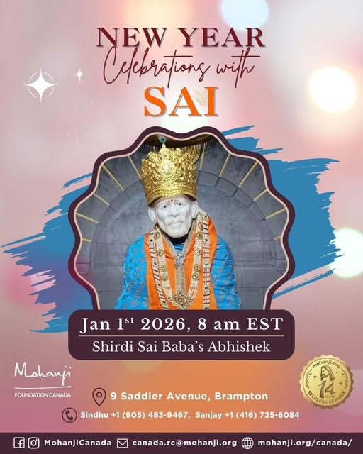 With immense joy, we invite you to join us on Thursday, January 1st 2026, at 8 am EST for Shirdi Saibabaโs Abhishek in Brampton.